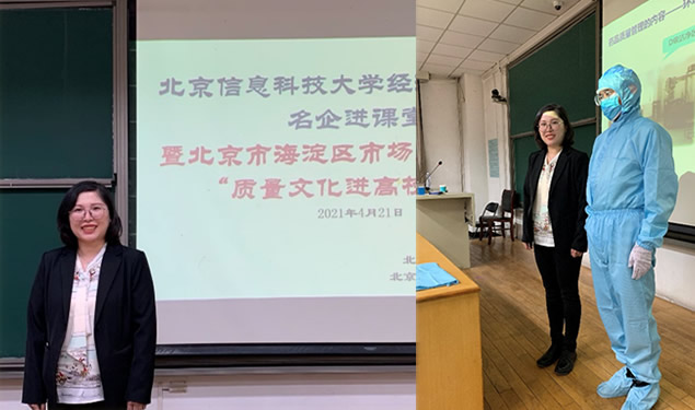 4月21日,公司走進北京信息科技大學經(jīng)濟管理學院,參與“名企進課堂”暨北京市海淀區(qū)市場監(jiān)督管理局“質(zhì)量文化進高校”活動,為莘莘學子帶來了一場別開生面的質(zhì)量管理課。作為質(zhì)量標桿企業(yè),本次走進高校旨在傳播質(zhì)量管理文化,傳授質(zhì)量管理知識,傳承質(zhì)量管理理念。北大維信質(zhì)量保證部張敏經(jīng)理在講解中穿插提問互動,場景演示等環(huán)節(jié),從企業(yè)介紹、質(zhì)量管理的發(fā)展歷程、藥品質(zhì)量管理的內(nèi)容和方法三個方面進行了授課。課程內(nèi)容生動,現(xiàn)場氣氛活躍,課后學生們紛紛表示受益良多,院方也對北大維信公司的此次支持深表謝意。